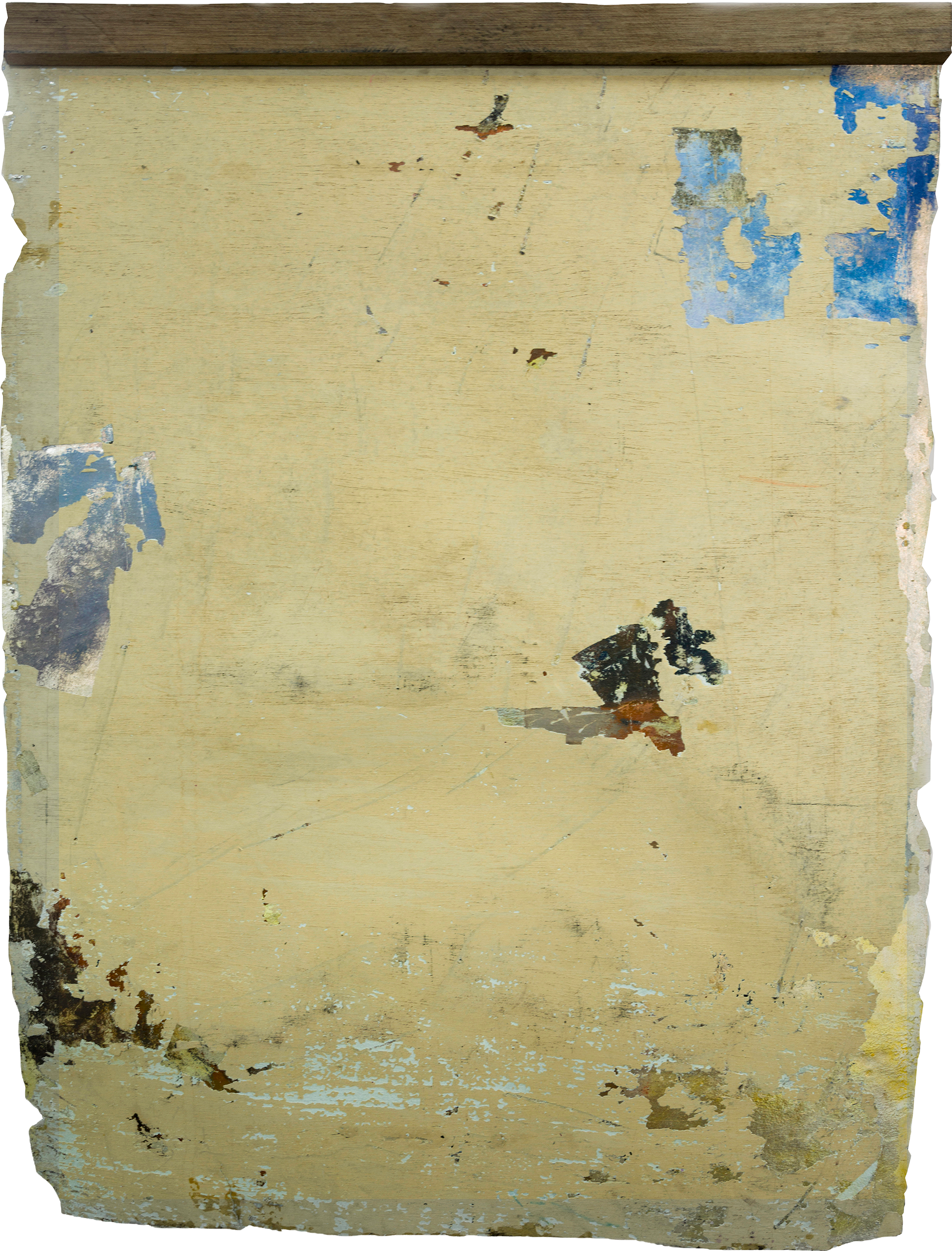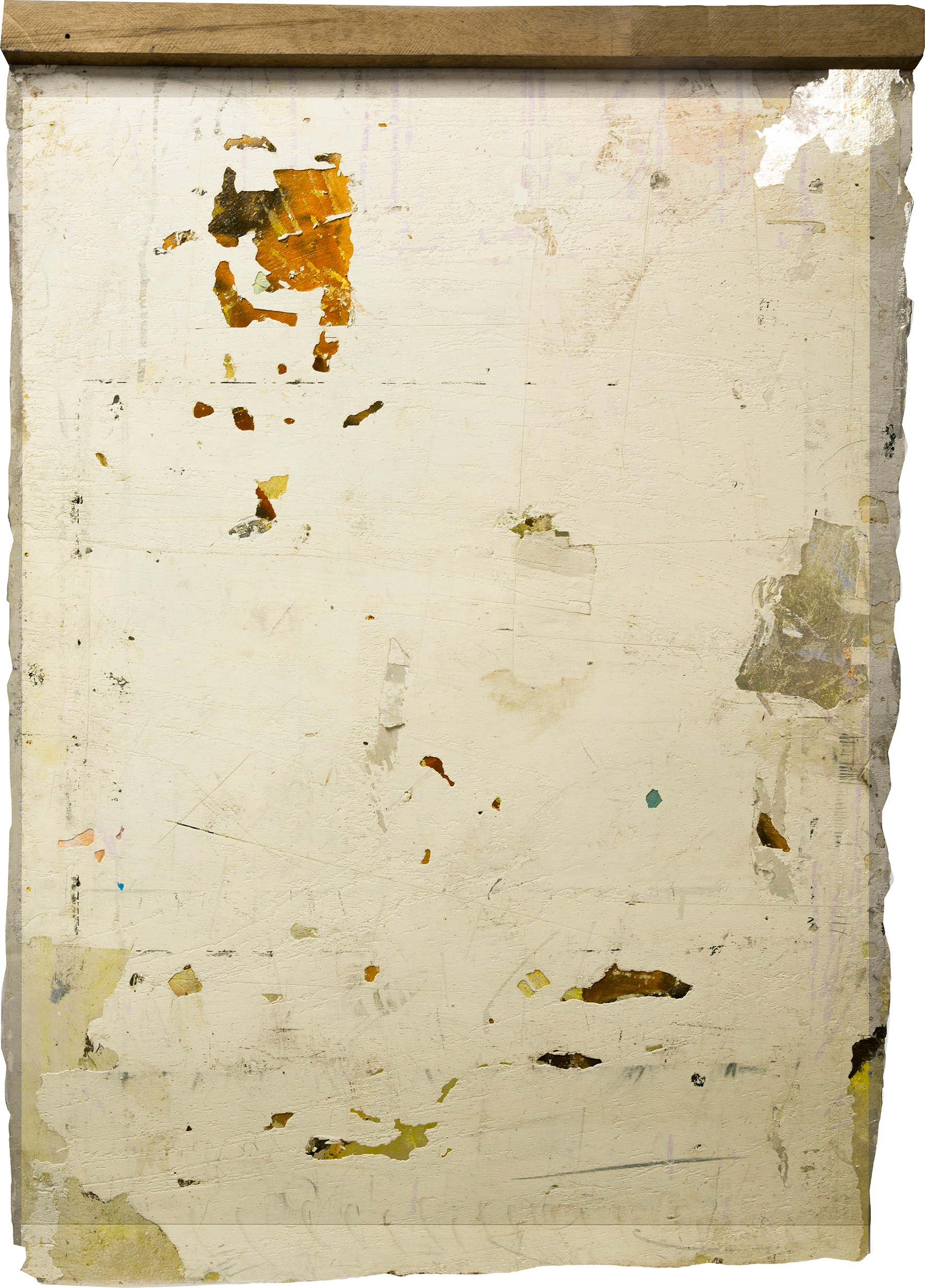 Exploración/ prueba: “El desgarro de Patroclo”, 2019. Pintura desprendida, 30 x 60 cm.Prueba/ exploración de desprendimiento, 2019. Exploración de resina sobre tela desprendida de nordex, 50 x 40 cm.Exploración/prueba, 2019. Pintura desprendida, 19 x 12 cm.