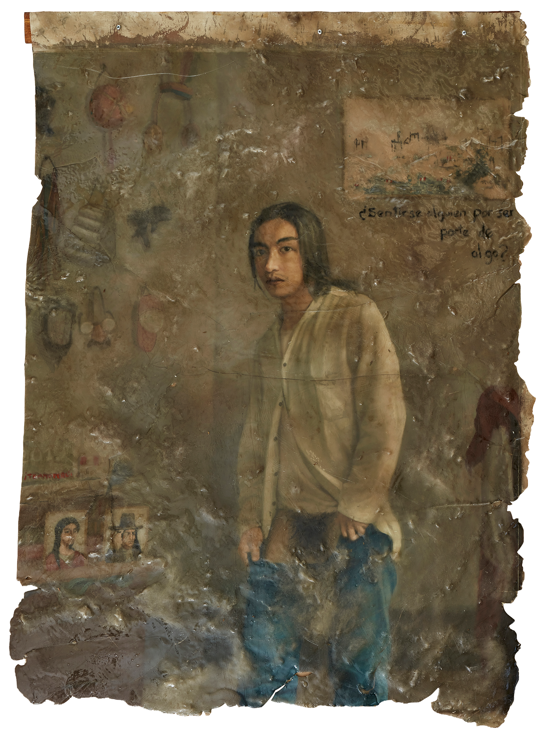 Este conjunto de piezas explora y reflexiona la tradición pictórica del óleo sobre lienzo a partir de sus propios procesos plásticos y representativos. De esta manera, se establece un diálogo visual con pinturas que, a través de la imagen que contienen, personifican narrativas y alteridades surgidas en el Perú durante el siglo XIX.